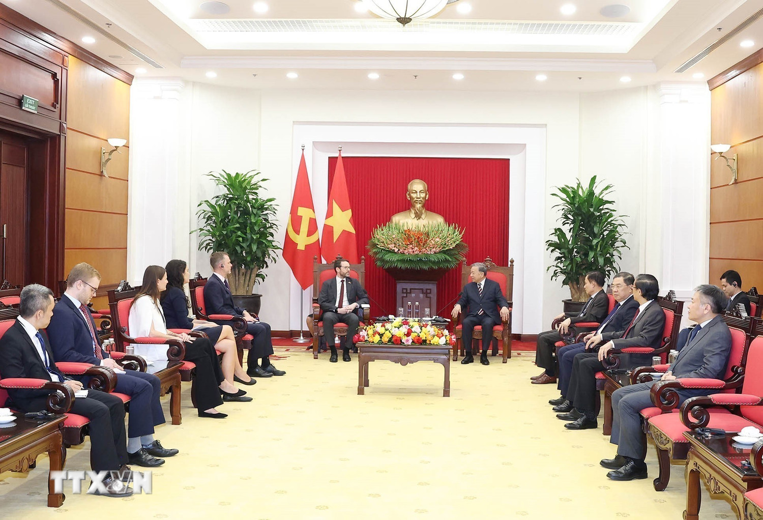 Tại cuộc tiếp, Tổng Bí thư Tô Lâm bày tỏ vui mừng về những bước phát triển tốt đẹp của quan hệ song phương trong thời gian vừa qua; khẳng định quan hệ song phương đã phát triển thực chất và hiệu quả trên tất cả các lĩnh vực, tương xứng với tầm mức quan hệ Đối tác chiến lược Việt Nam - Anh; đánh giá cao vai trò của Đại sứ, góp phần quan trọng vào các thành tựu hợp tác song phương.