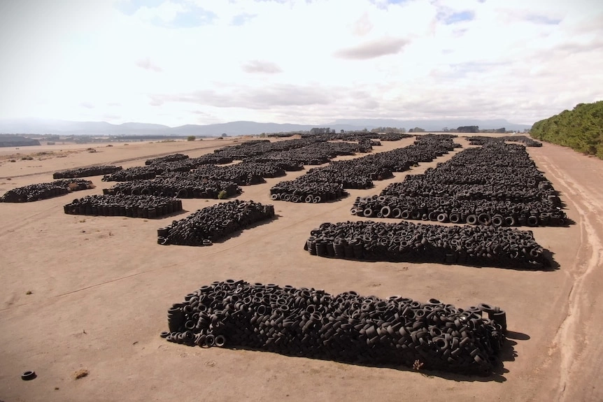 Một bãi chứa hơn một triệu lốp xe gần Longford, Tasmania, Australia, năm 2024