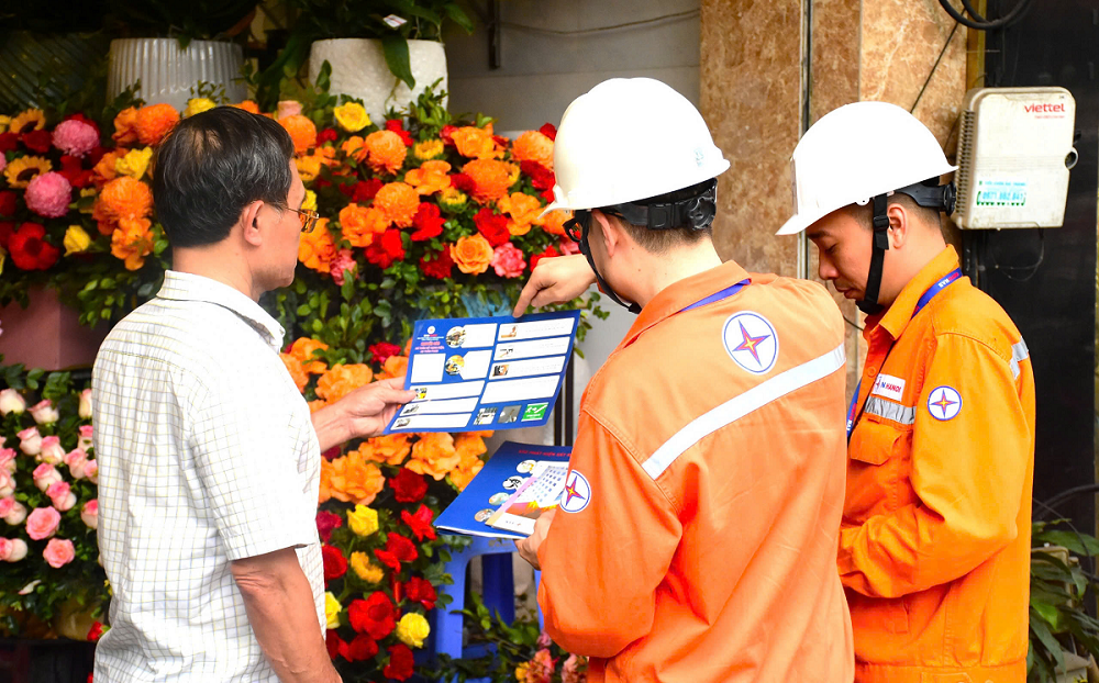 Nhân viên điện lực phổ biến kiến thức sử dụng điện an toàn và kỹ năng xử lý tình huống khi có sự cố điện xảy ra cho người dân
