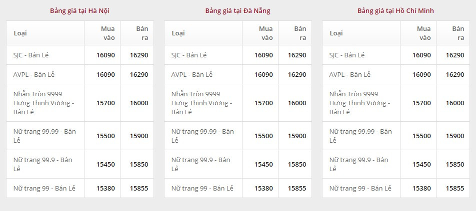 Giá vàng tại Công ty TNHH MTV Vàng bạc đá quý Sài Gòn (SJC):