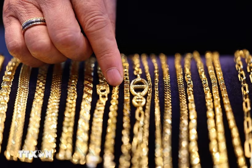 Trang sức vàng được bày bán tại tiệm kim hoàn ở Seoul, Hàn Quốc