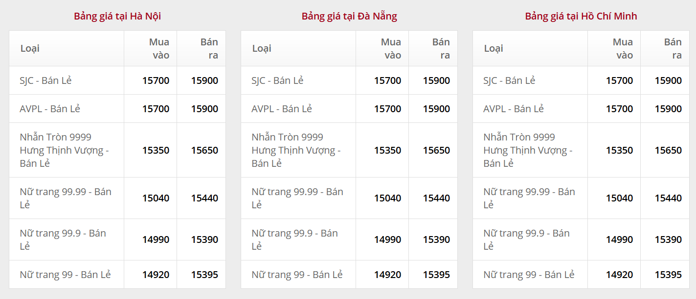 Giá vàng tại Công ty TNHH MTV Vàng bạc đá quý Sài Gòn (SJC):