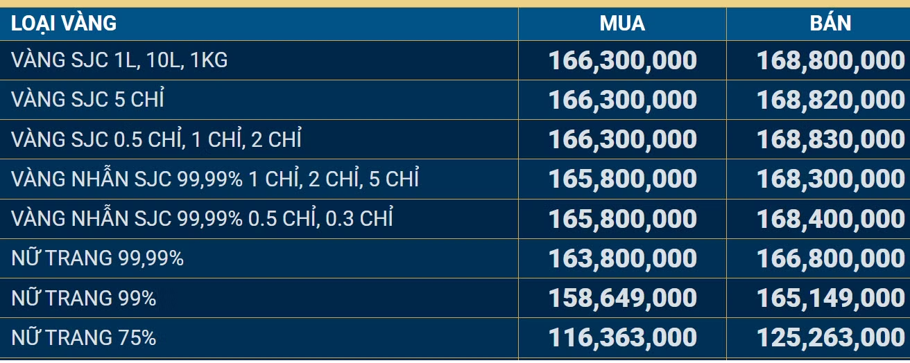 Giá vàng tại Công ty TNHH MTV Vàng bạc đá quý Sài Gòn (SJC):