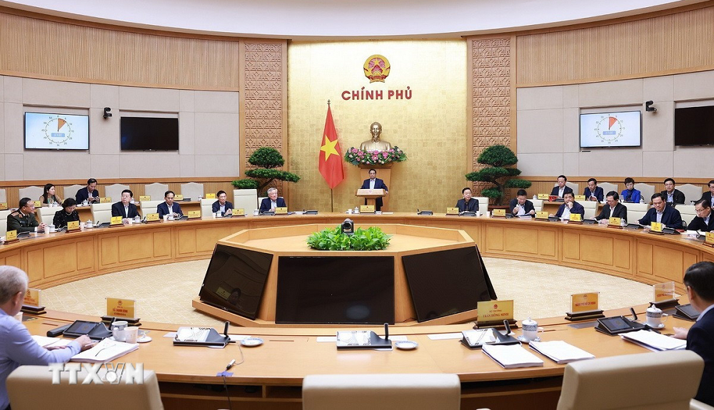 Thủ tướng Phạm Minh Chính chủ trì phiên họp Chính phủ chuyên đề về Trung tâm tài chính quốc tế tại Việt Nam. (Ảnh: TTXVN)