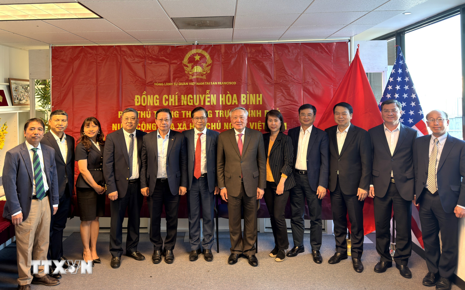 Phó Thủ tướng Thường trực Nguyễn Hòa Bình thăm, làm việc với cán bộ, nhân viên Tổng lãnh sự quán Việt Nam tại San Francisco