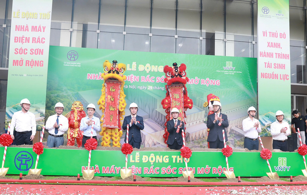 Ngày 29/4, UBND thành phố Hà Nội phối hợp với Công ty CP năng lượng môi trường Thiên Ý Hà Nội tổ chức Lễ động thổ dự án Nhà máy điện rác Sóc Sơn mở rộng, tại khu liên hợp xử lý chất thải rắn Nam Sơn, xã Trung Giã.