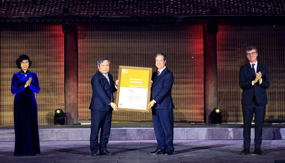 Lãnh đạo UBND thành phố Hà Nội đón nhận Chứng nhận danh hiệu thành phố Hà Nội là thành viên Mạng lưới Thành phố học tập toàn cầu của UNESCO
