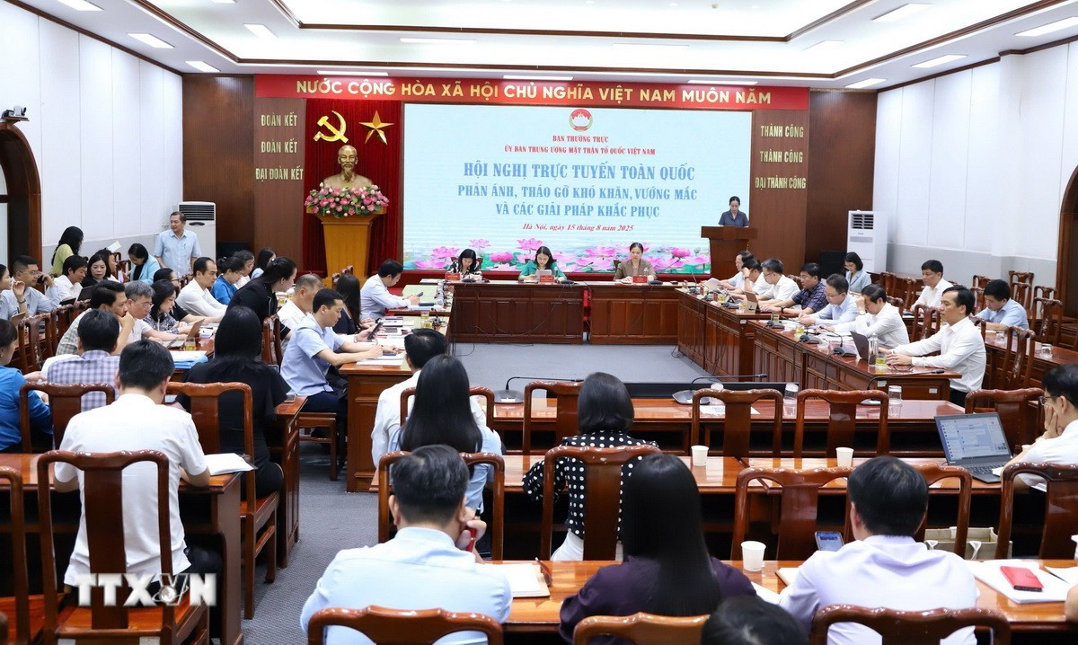 Quang cảnh Hội nghị toàn quốc về giải pháp khắc phục việc sắp xếp, tinh gọn tổ chức bộ máy Mặt trận Tổ quốc, các tổ chức chính trị - xã hội, các hội quần chúng