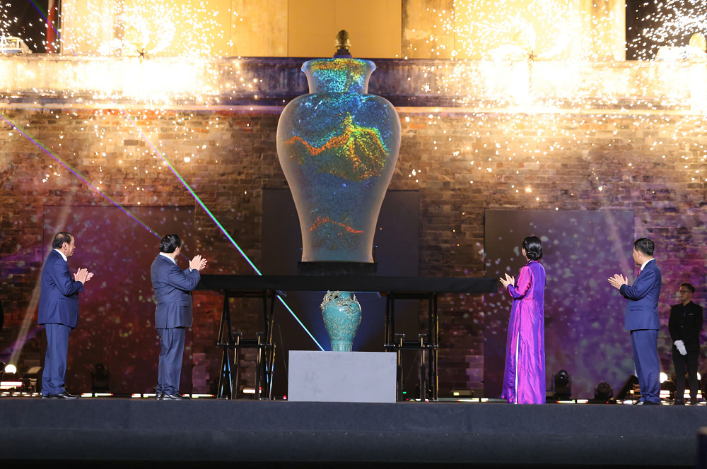 Thủ tướng Chính phủ và các đại biểu thực hiện nghi thức đặc biệt (vẽ tranh gốm ngũ sắc) khai mạc lễ hội
