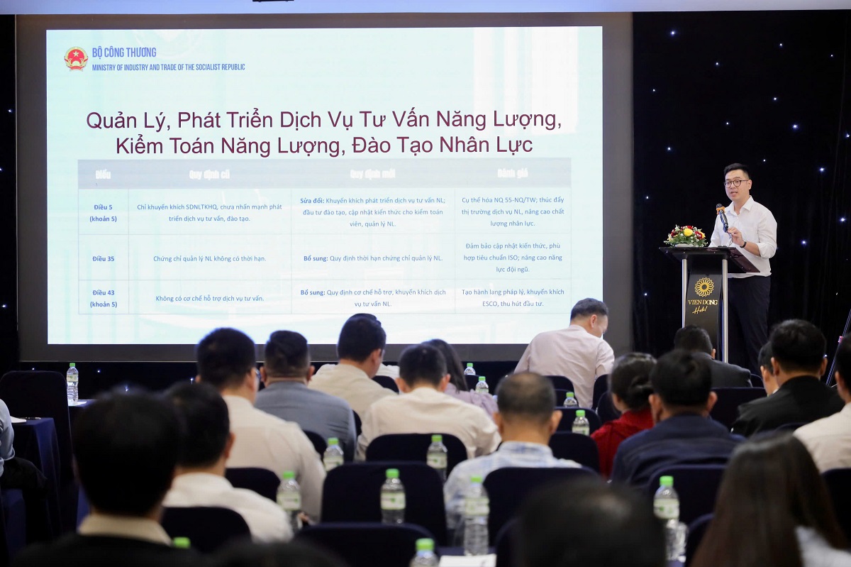 Phát biểu tại hội nghị, ông Phạm Thành Trung, Phó Vụ trưởng Vụ Pháp chế nhấn mạnh, biến đổi khí hậu đã và đang tác động sâu rộng đến phát triển kinh tế - xã hội, an ninh năng lượng và phúc lợi của người dân. Cam kết của Việt Nam tại Hội nghị COP26 về mục tiêu phát thải ròng bằng 0 vào năm 2050 khẳng định quyết tâm mạnh mẽ của Chính phủ trong tiến trình chuyển dịch năng lượng công bằng, bền vững. Trong bối cảnh đó, sử dụng năng lượng tiết kiệm và hiệu quả không chỉ là một giải pháp kỹ thuật - quản trị mà còn là “nguồn năng lượng thứ nhất” với chi phí thấp, có thể phát huy ngay. Đây chính là yếu tố giúp Việt Nam nâng cao năng lực cạnh tranh, giảm phát thải khí nhà kính và đảm bảo an ninh năng lượng quốc gia.