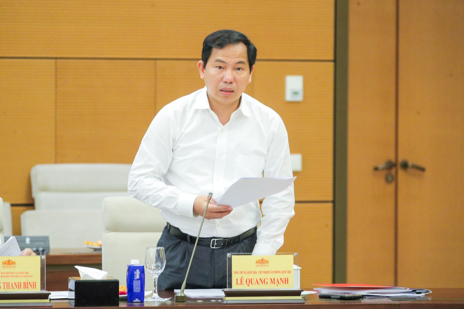 Tổng Thư ký Quốc hội, Chủ nhiệm Văn phòng Quốc hội Lê Quang Mạnh báo cáo tại cuộc họp