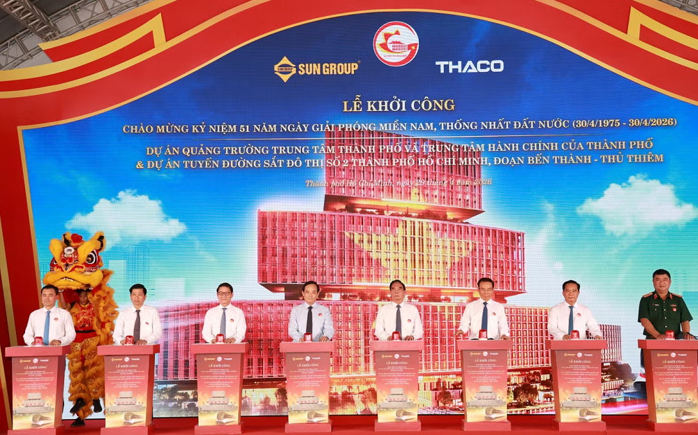 Loạt dự án, công trình quy mô lớn được TPHCM khởi công, động thổ gồm quảng trường trung tâm và Trung tâm hành chính TPHCM, tuyến đường sắt số 2 đoạn Bến Thành - Thủ Thiêm, khu đô thị Đại học Quốc tế, dự án công viên cảnh quan Bến Nhà Rồng - Khánh Hội. Trong dịp này, thành phố cũng trao Quyết định chấp thuận nhà đầu tư dự án cảng trung chuyển quốc tế Cần Giờ.