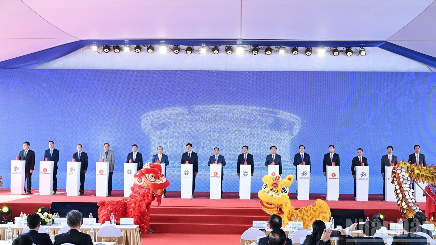 Chủ tịch Quốc hội Trần Thanh Mẫn dự tại điểm cầu khởi công dự án đầu tư xây dựng trục đại lộ cảnh quan sông Hồng (Hà Nội). Sự kiện được tổ chức đồng loạt theo hình thức trực tiếp kết hợp trực tuyến tại 79 điểm cầu.