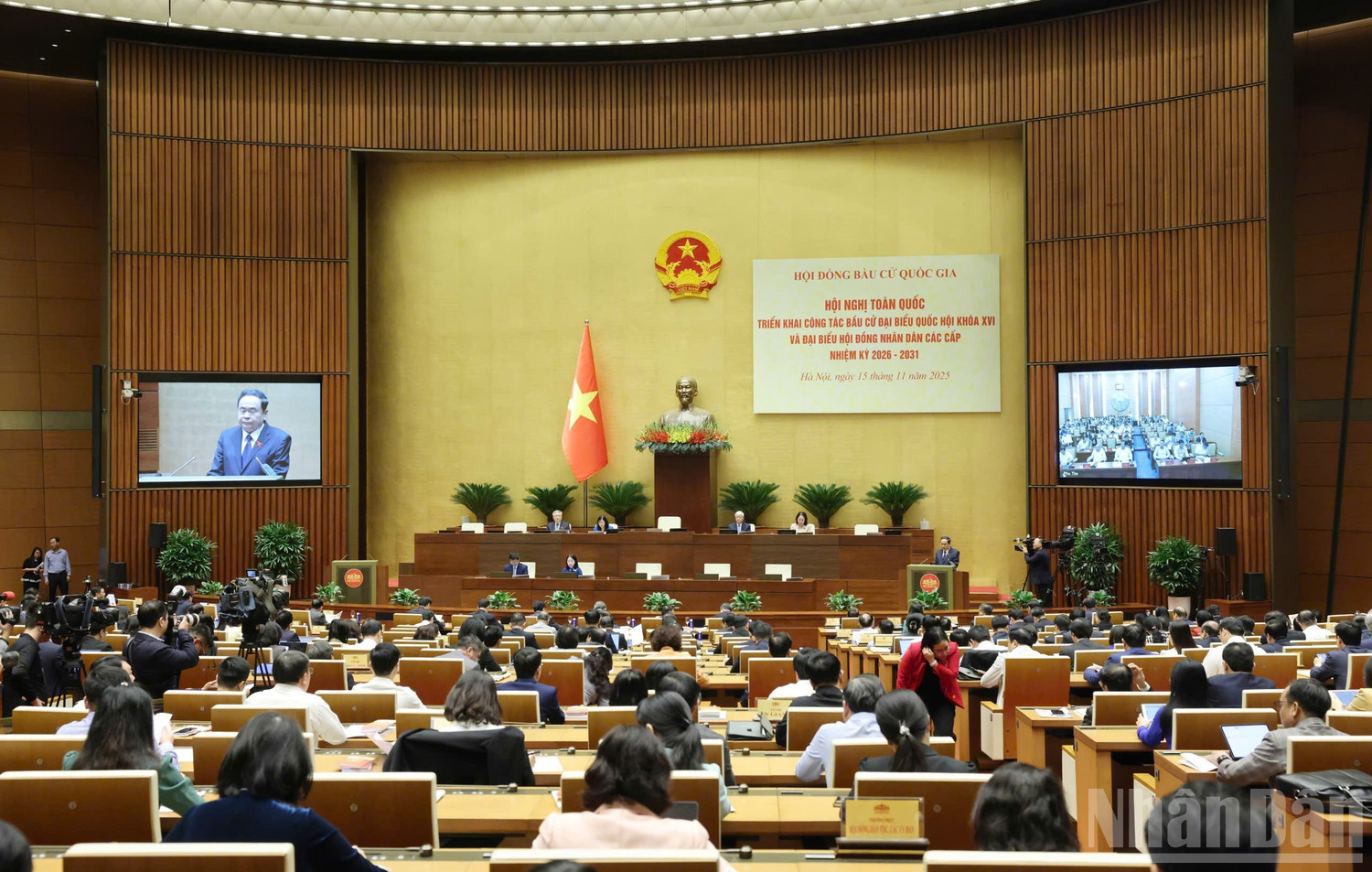 Ngày 15/11, tại Nhà Quốc hội, Hội đồng bầu cử quốc gia tổ chức Hội nghị toàn quốc quán triệt Chỉ thị của Bộ Chính trị triển khai công tác bầu cử đại biểu Quốc hội khóa XVI và đại biểu Hội đồng nhân dân các cấp nhiệm kỳ 2026 - 2031 theo hình thức trực tiếp kết hợp trực tuyến đến các điểm cầu cấp tỉnh, cấp xã của 34 tỉnh, thành phố trong cả nước.