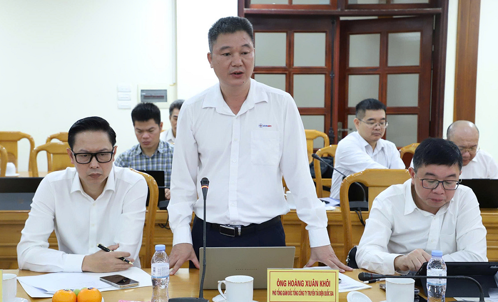 Phó Tổng giám đốc EVNNPT Hoàng Xuân Khôi báo cáo và nêu các kiến nghị tại buổi làm việc