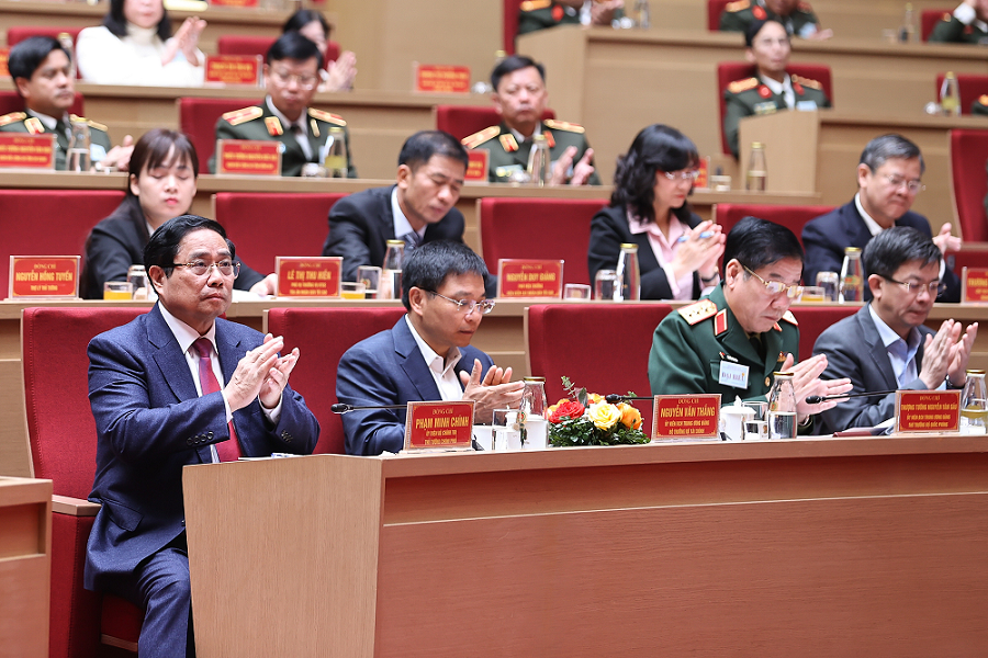 Thủ tướng Chính phủ Phạm Minh Chính và các đại biểu dự Hội nghị về bảo đảm an ninh, trật tự phục vụ phát triển kinh tế - xã hội vùng đồng bằng sông Cửu Long