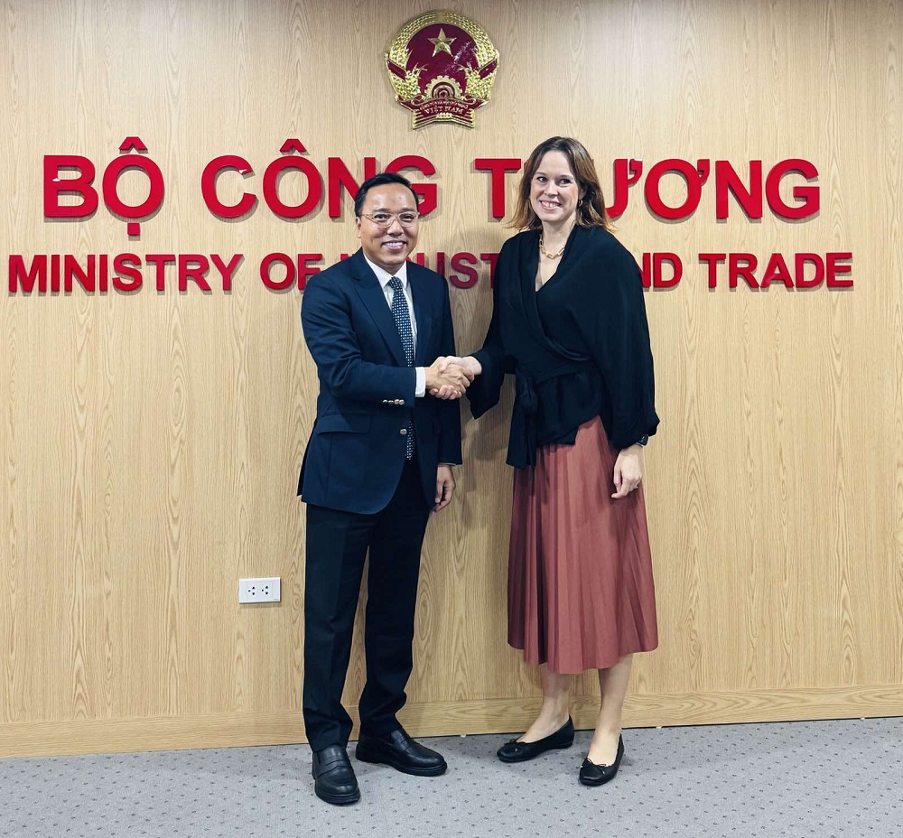 Thứ trưởng Bộ Công Thương Nguyễn Hoàng Long tiếp và làm việc với bà Sara Modig, Quốc Vụ khanh, Thứ trưởng Bộ Khí hậu và Doanh nghiệp Vương quốc Thụy Điển. (Ảnh: moit.gov.vn)