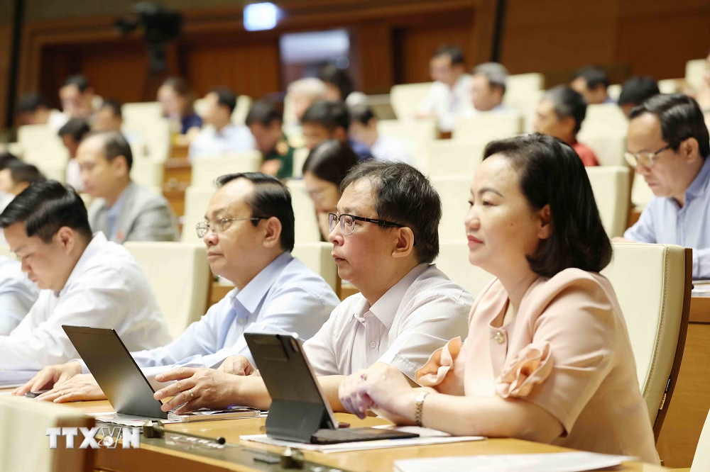 Các đại biểu tham dự Hội nghị tại điểm cầu chính Hội trường Diên Hồng, Nhà Quốc hội