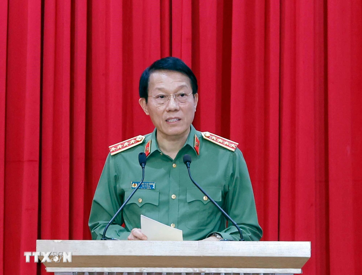 Đại tướng Lương Tam Quang, Bí thư Đảng ủy Công an Trung ương, Bộ trưởng Bộ Công an phát biểu khai mạc Hội nghị