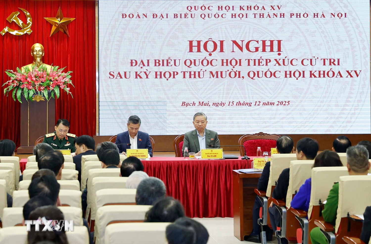 Ngày 15/12, tại trụ sở HĐND, UBND phường Bạch Mai, Tổng Bí thư Tô Lâm cùng các thành viên đoàn đại biểu Quốc hội thành phố Hà Nội, đơn vị bầu cử số 1 đã tiếp xúc cử tri 11 phường (Ba Đình, Ngọc Hà, Giảng Võ, Đống Đa, Kim Liên, Văn Miếu - Quốc Tử Giám, Láng, Ô Chợ Dừa, Hai Bà Trưng, Vĩnh Tuy, Bạch Mai), thông báo kết quả kỳ họp thứ 10, Quốc hội khóa XV và lắng nghe các ý kiến, kiến nghị của cử tri.