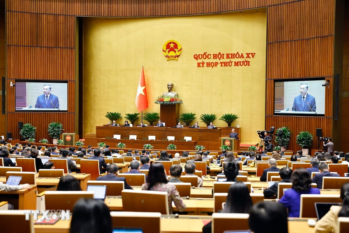 Tiếp tục chương trình kỳ họp thứ 10, Quốc hội khóa XV, chiều 4/11, tại Nhà Quốc hội, Tổng Bí thư Tô Lâm đã trao đổi, thông tin về một số điểm mới và những định hướng quan trọng trong dự thảo văn kiện trình Đại hội đại biểu toàn quốc lần thứ XIV của Đảng.