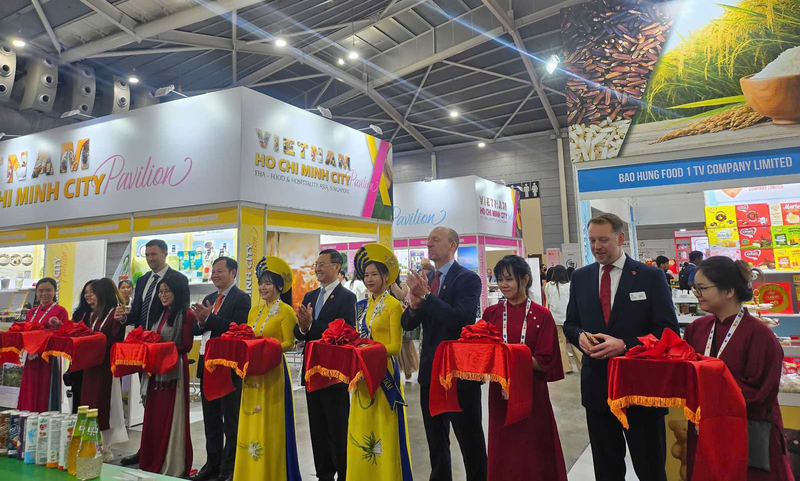 Cắt băng khai mạc gian hàng Việt Nam tại hội chợ triển lãm FHA 2026 Singapore. (Ảnh: moit.gov.vn)