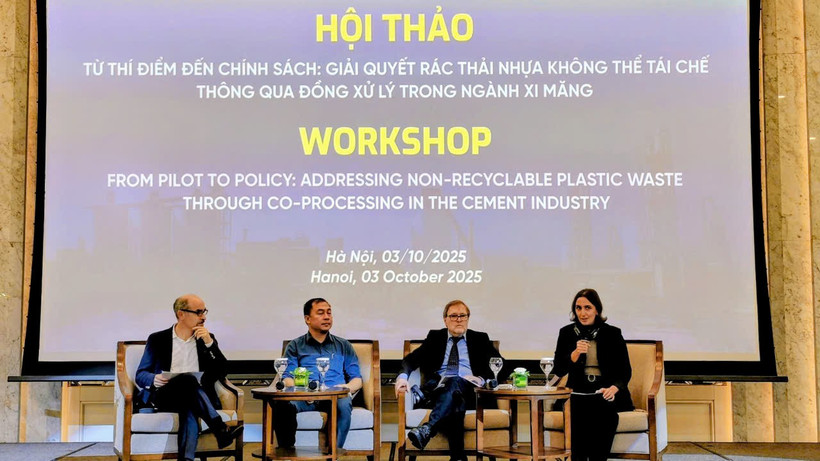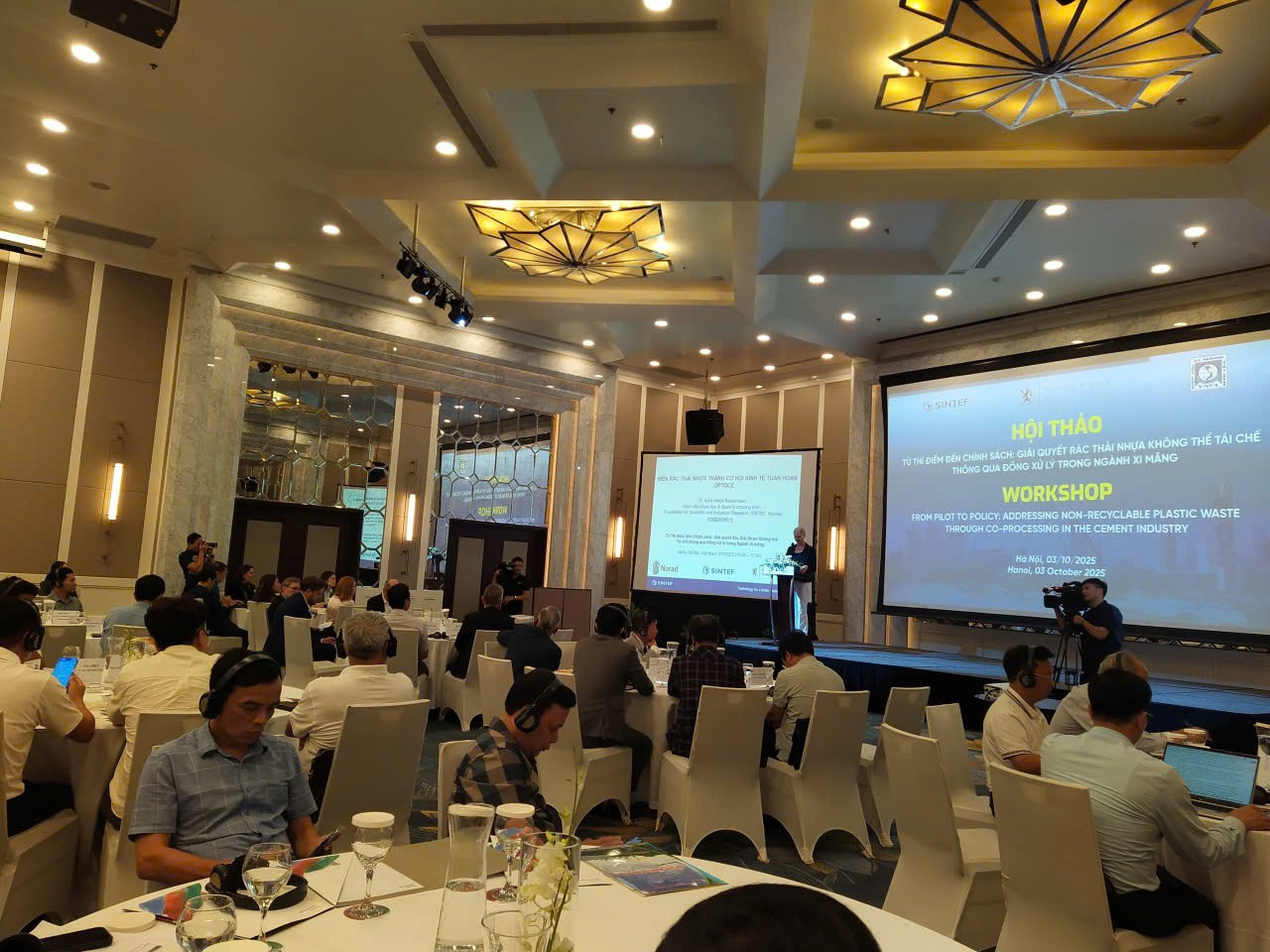 Quang cảnh tại hội thảo "Từ thí điểm đến chính sách giải quyết rác thải nhựa không thể tái chế thông qua đồng xử lý trong ngành xi-măng”