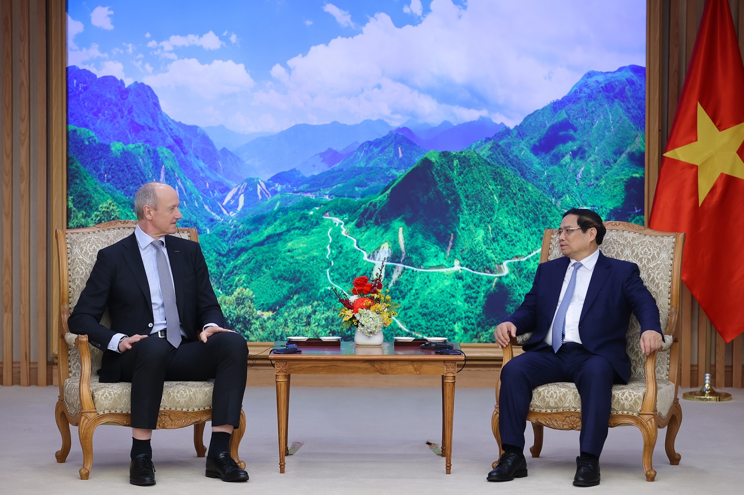 Chủ tịch Tập đoàn Siemens Roland Busch đánh giá cao các mục tiêu của Việt Nam trong chuyển đổi xanh, ứng phó biến đổi khí hậu, phát triển các ngành công nghệ cao, đặc biệt là bán dẫn, phát triển hệ thống hạ tầng giao thông, đặc biệt là đường sắt.