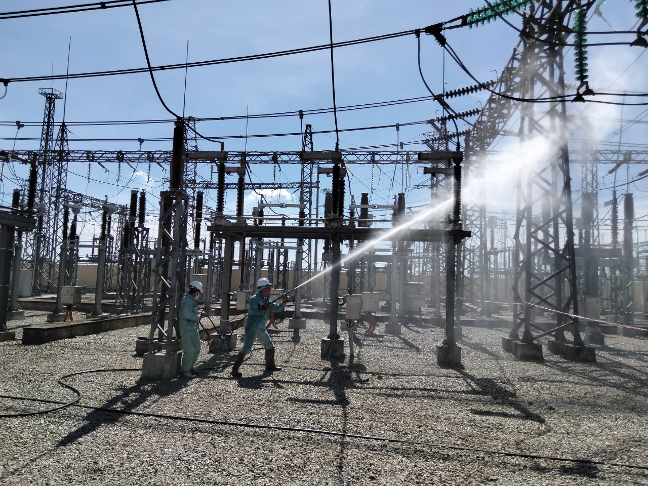 TBA 500kV Dốc Sỏi được vệ sinh sứ hotline bằng nước áp lực cao