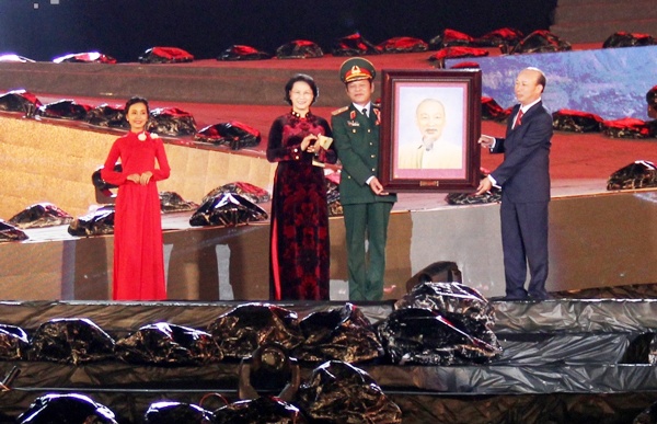 Chủ tịch Quốc hội Nguyễn Thị Kim Ngân trao tặng ngành Than bức ảnh chân dung Bác Hồ.