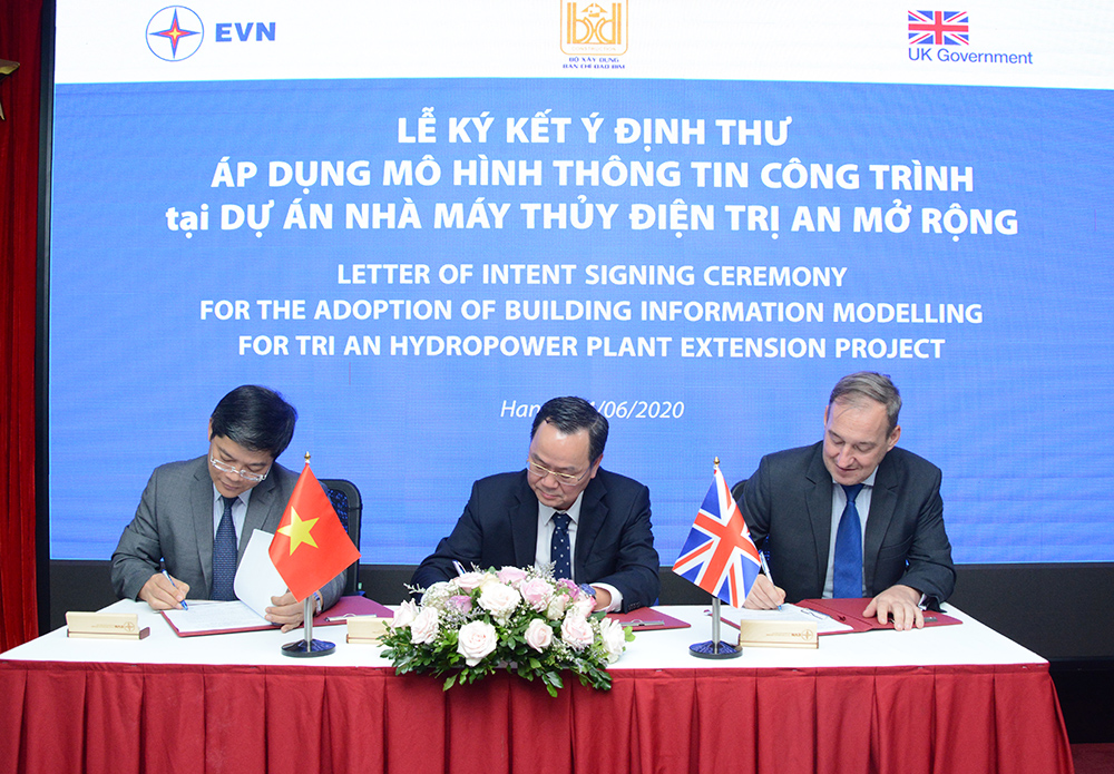 Tại Hà Nội, Tập đoàn Điện lực Việt Nam (EVN), Đại sứ quán Anh tại Việt Nam và Ban Chỉ đạo đề án áp dụng mô hình thông tin công trình thuộc Bộ Xây dựng vừa ký kết ý định thư áp dụng mô hình thông tin công trình (BIM) tại dự án Nhà máy Thuỷ điện Trị An mở rộng.