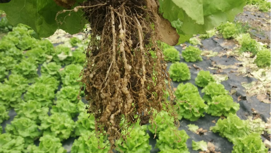 Rễ cây rau diếp bị ký sinh giun đũa đẻ trứng