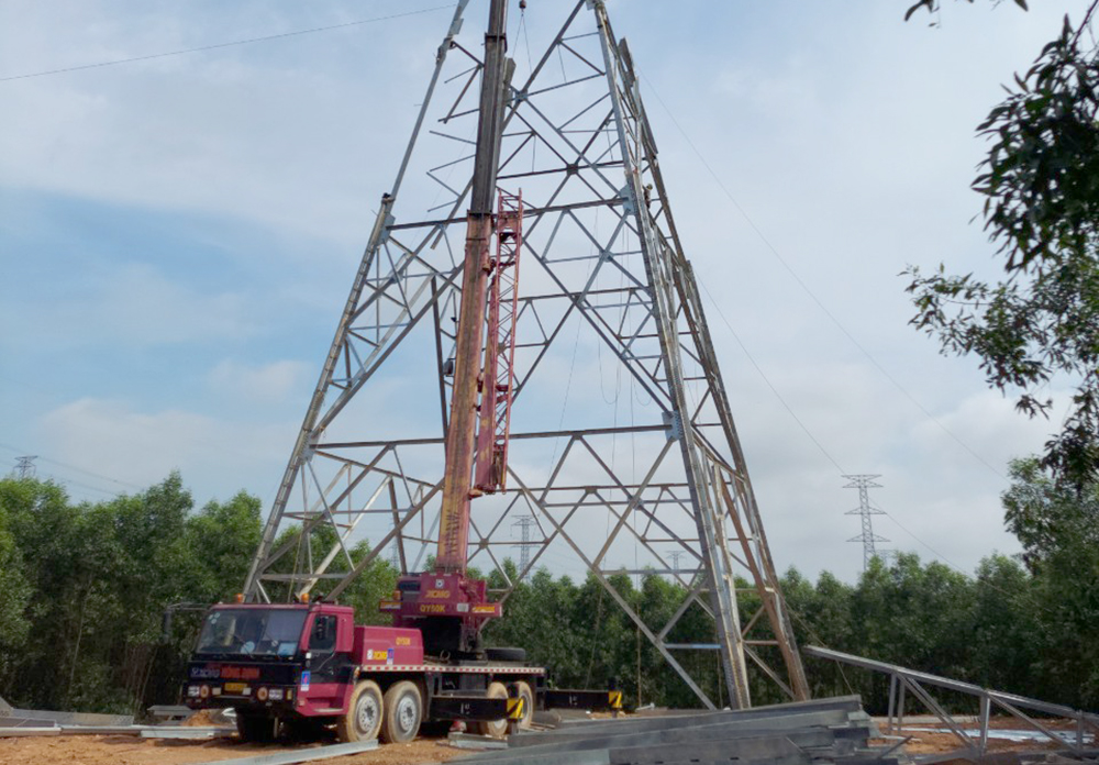 Thi công dựng cột đường dây 500kV Vũng Áng – Quảng Trạch đoạn qua địa phận tỉnh Hà Tĩnh