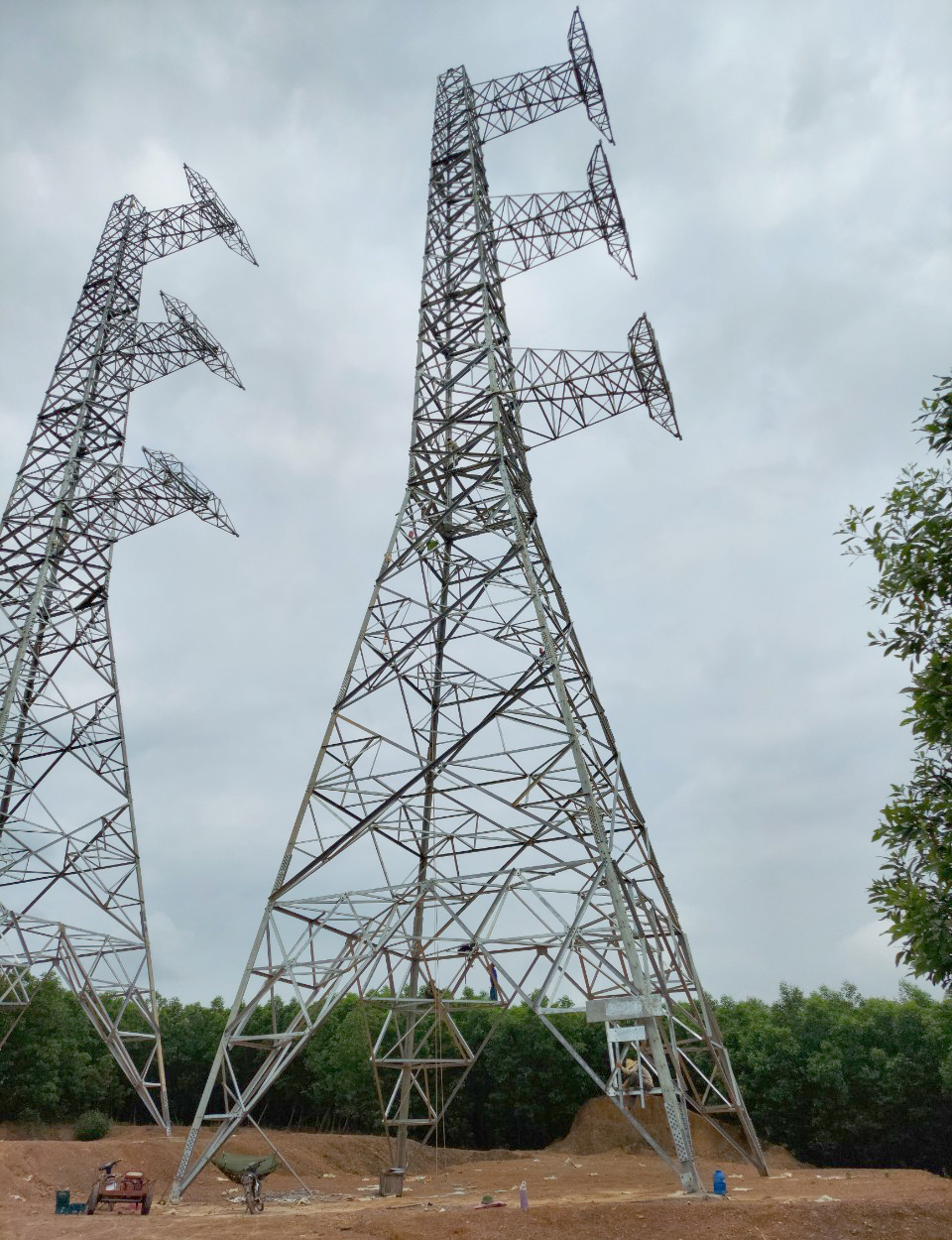 Nhiều khoảng cột trên địa bàn tỉnh Hà Tĩnh chưa thể kéo dây do vướng mắc mặt bằng trong hành lang tuyến