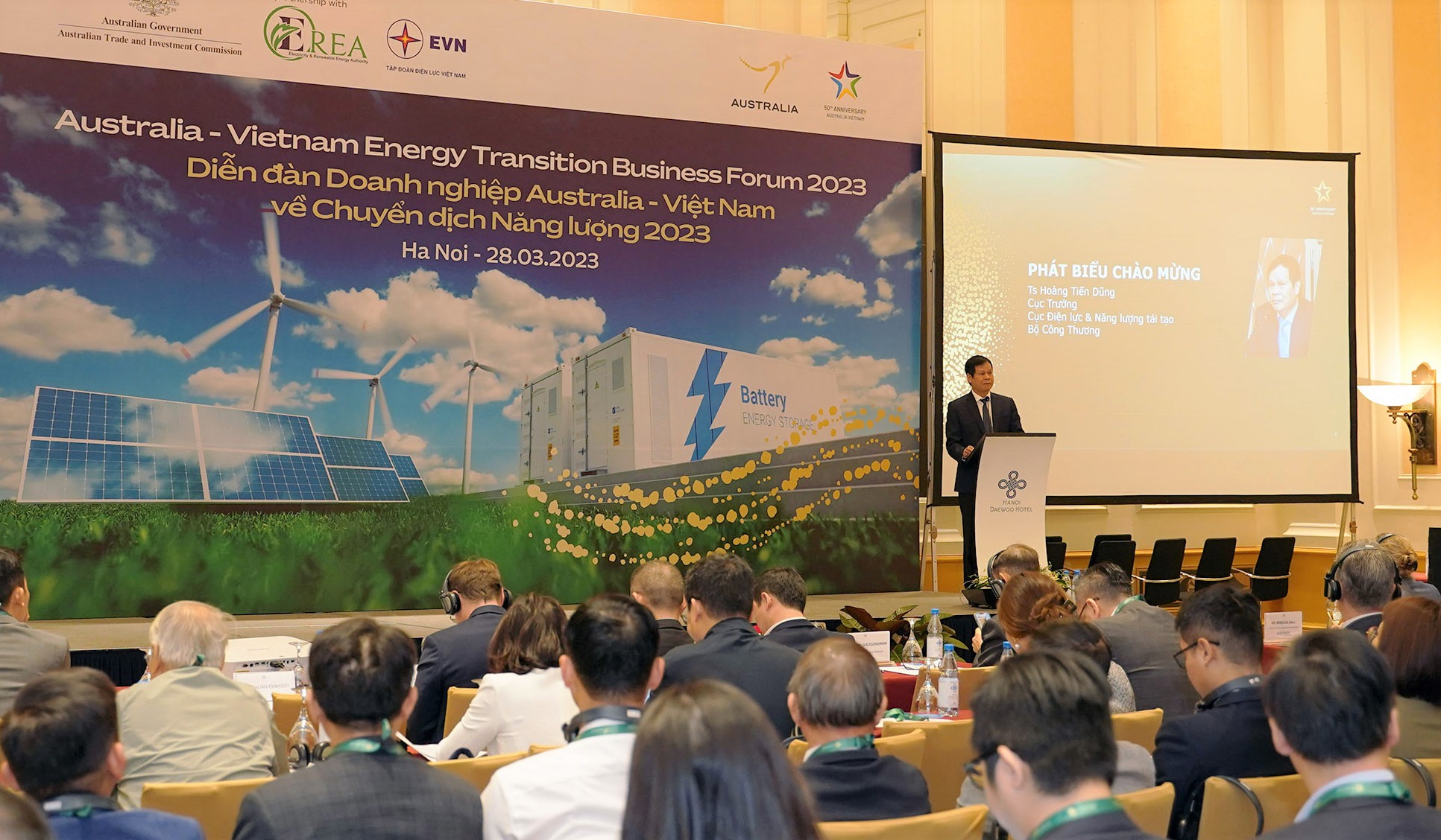 Diễn đàn Doanh nghiệp Australia – Việt Nam về chuyển dịch năng lượng 2023 do Cơ quan Thương mại và Đầu tư Chính phủ Australia (Austrade) phối hợp với Cục Điện lực và Năng lượng tái tạo, Bộ Công Thương Việt Nam và Tập đoàn Điện lực Việt Nam (EVN) tổ chức.