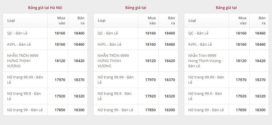 Giá vàng tại Công ty TNHH MTV Vàng bạc đá quý Sài Gòn (SJC):
