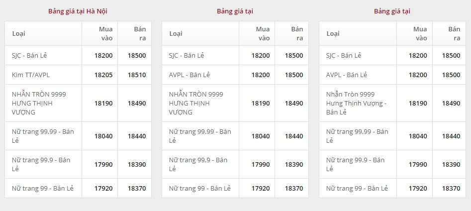 Giá vàng tại Công ty TNHH MTV Vàng bạc đá quý Sài Gòn (SJC):