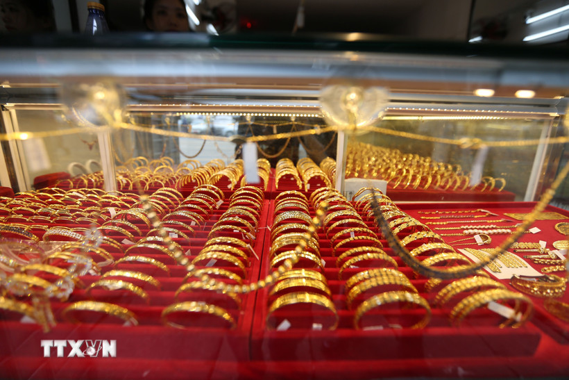 Vàng được bày bán tại cửa hàng kim hoàn ở Yangon, Myanmar