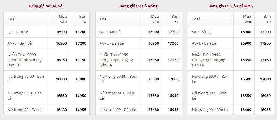 Giá vàng tại Công ty Cổ phần Đầu tư vàng Phú Quý: