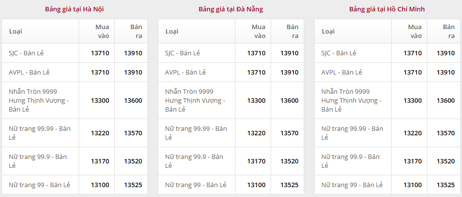 Giá vàng tại Công ty CP Đầu tư vàng Phú Quý:
