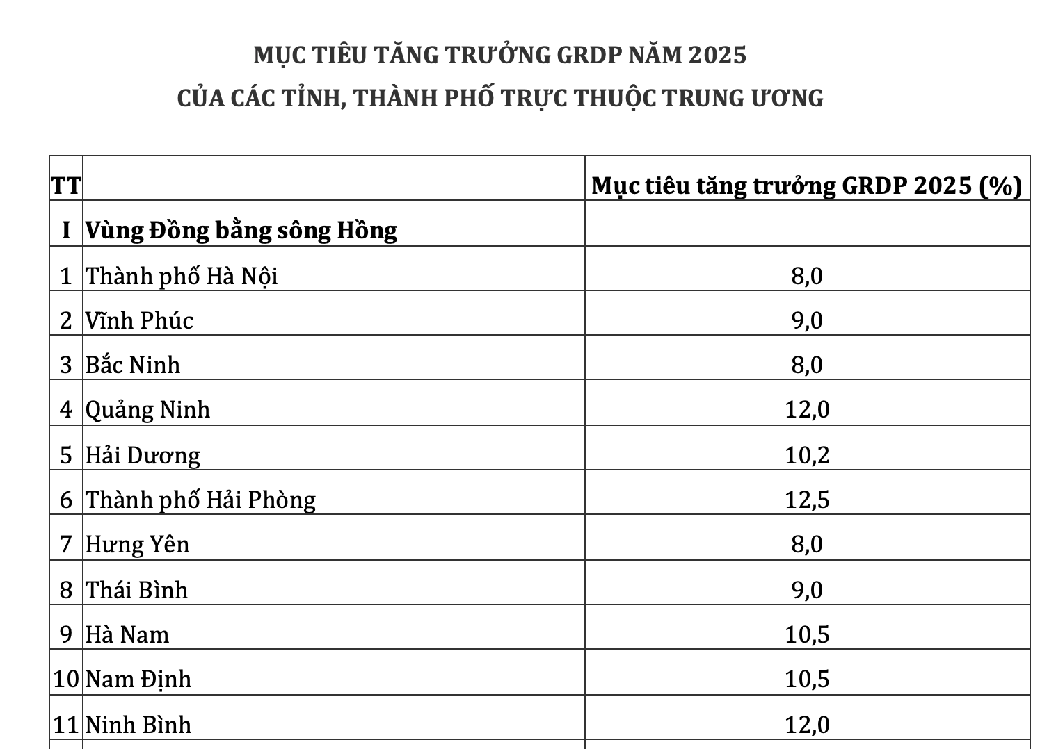 UBND các tỉnh, thành phố trực thuộc Trung ương khẩn trương chỉ đạo nghiên cứu, rà soát các nguồn lực, động lực, năng lực mới cho tăng trưởng và giải pháp thực hiện, báo cáo HĐND cùng cấp trong tháng 2/2025 để điều chỉnh mục tiêu tăng trưởng GRDP của địa phương trong trường hợp HĐND đã quyết nghị mục tiêu tăng trưởng thấp hơn mục tiêu tại nghị quyết này nhằm quán triệt và tổ chức thực hiện đồng bộ, toàn diện, hiệu quả.