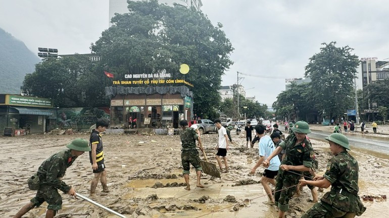 Lực lượng quân đội là nòng cốt trong công tác khắc phục hậu quả thiên tai tại phường Hà Giang 1 và 2, tỉnh Tuyên Quang