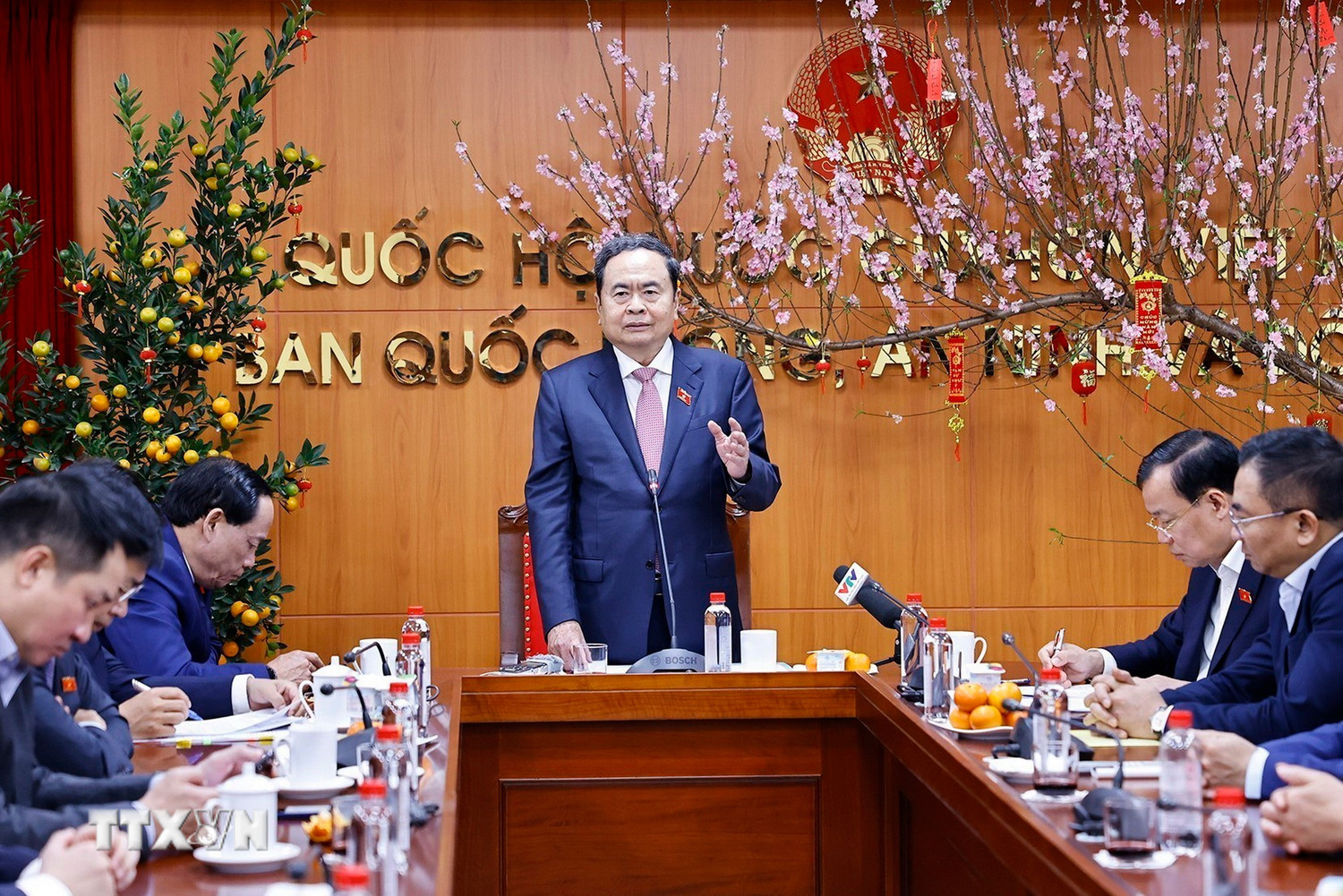 Chủ tịch Quốc hội Trần Thanh Mẫn phát biểu tại buổi gặp mặt các cán bộ công chức, ủy viên Ủy ban Quốc phòng, An ninh và Đối ngoại của Quốc hội