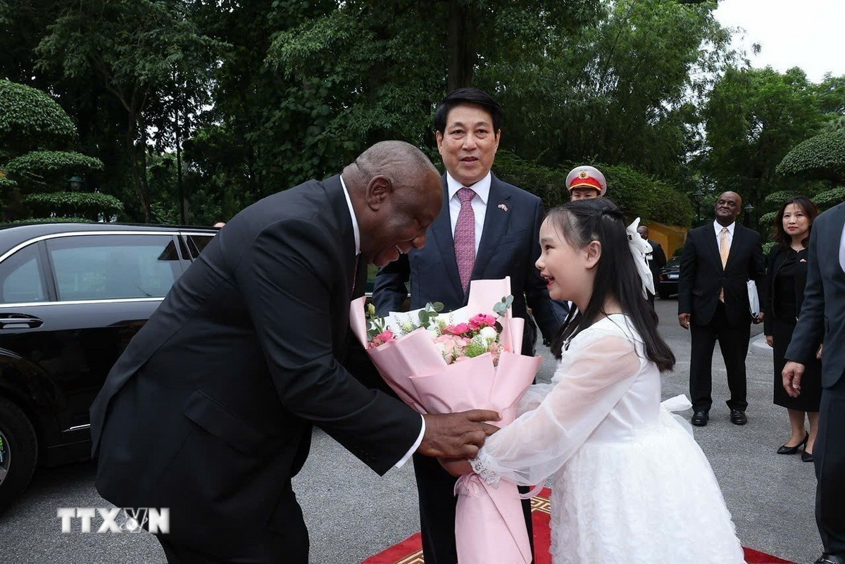 Tại Phủ Chủ tịch, Chủ tịch nước Lương Cường đã chủ trì Lễ đón cấp Nhà nước Tổng thống Matamela Cyril Ramaphosa.