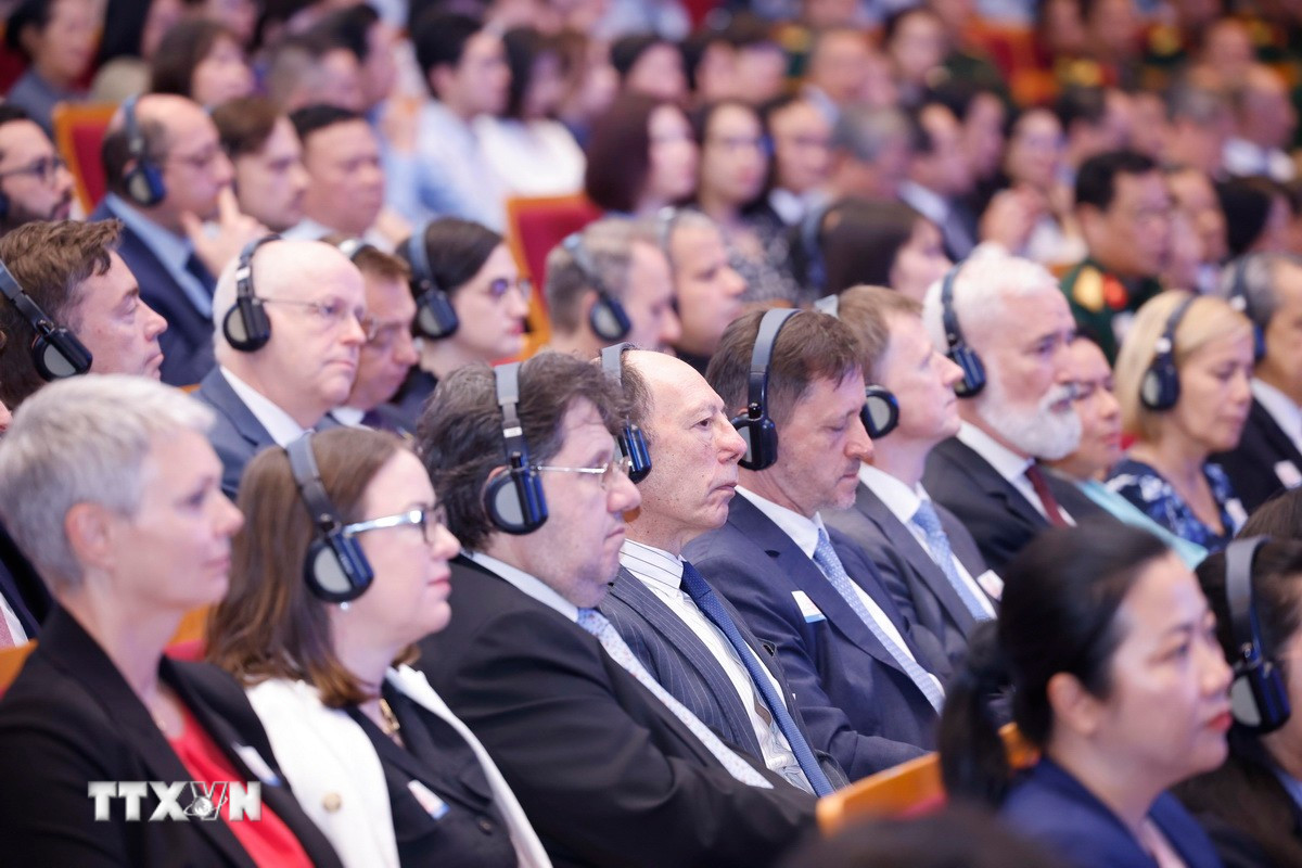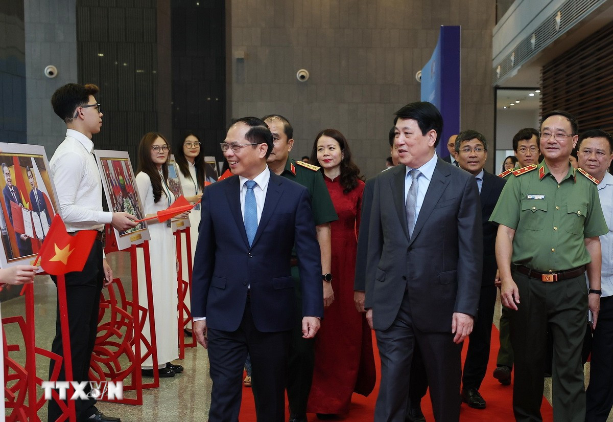 Chủ tịch nước Lương Cường với đại biểu dự hội thảo khoa học quốc tế “50 năm thống nhất đất nước: Vai trò kiến tạo hòa bình của ngoại giao trong lịch sử và hiện tại”
