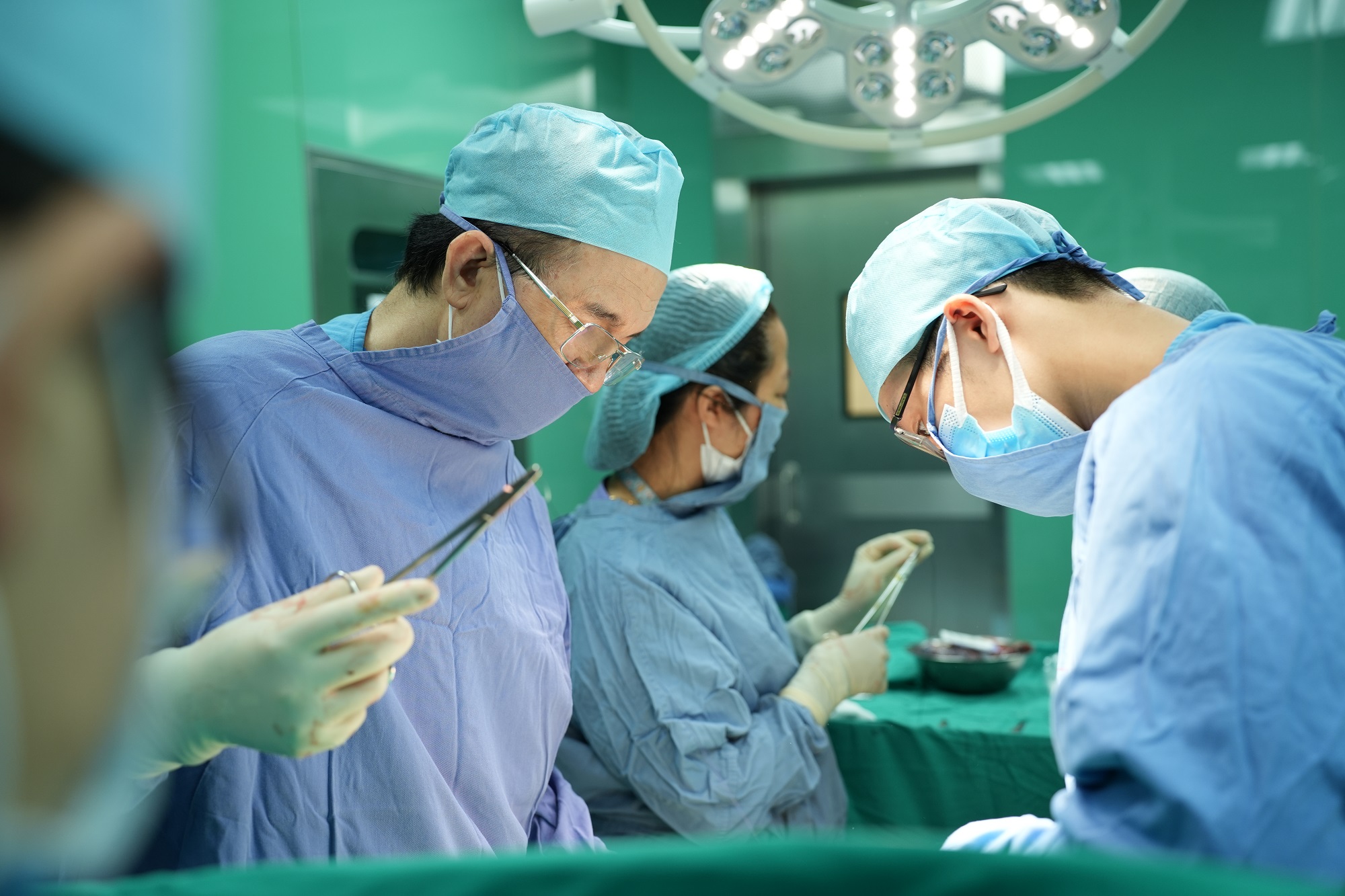 Mặc dù được điều trị nội khoa tích cực, thai nhi tiếp nhận thuốc trưởng thành phổi tốt nhưng huyết áp của chị G vẫn tăng giảm liên tục. Nhận thấy sức khỏe của mẹ khó mà cầm cự được lâu hơn, 2 bé có thể được nuôi sống tốt hơn nếu ở bên ngoài, vì vậy, hội chẩn liên chuyên khoa được tiến hành, quyết định mổ cấp cứu để đảm bảo tính mạng cho 3 mẹ con.