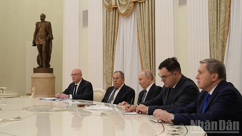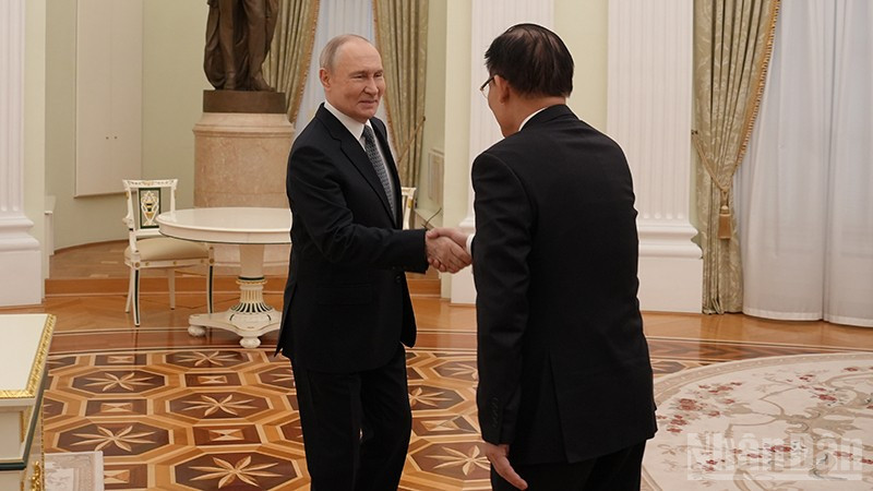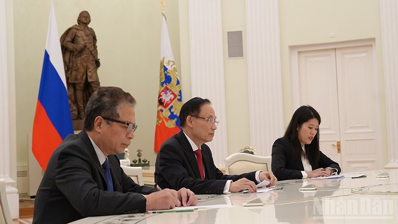 Tổng thống Liên bang Nga Vladimir Putin tiếp Đặc phái viên của Tổng Bí thư Tô Lâm, Ủy viên Bộ Chính trị, Bộ trưởng Ngoại giao Lê Hoài Trung tại Điện Kremlin