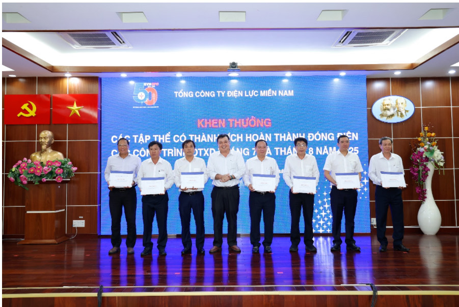 Hàng tháng, EVNSPC tổ chức khen thưởng các tập thể, cá nhân có thành tích trong công tác đóng điện các công trình
