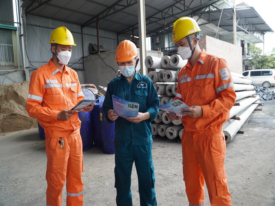 Nhân viên điện lực hướng dẫn doanh nghiệp sử dụng điện an toàn, tiết kiệm, hiệu quả