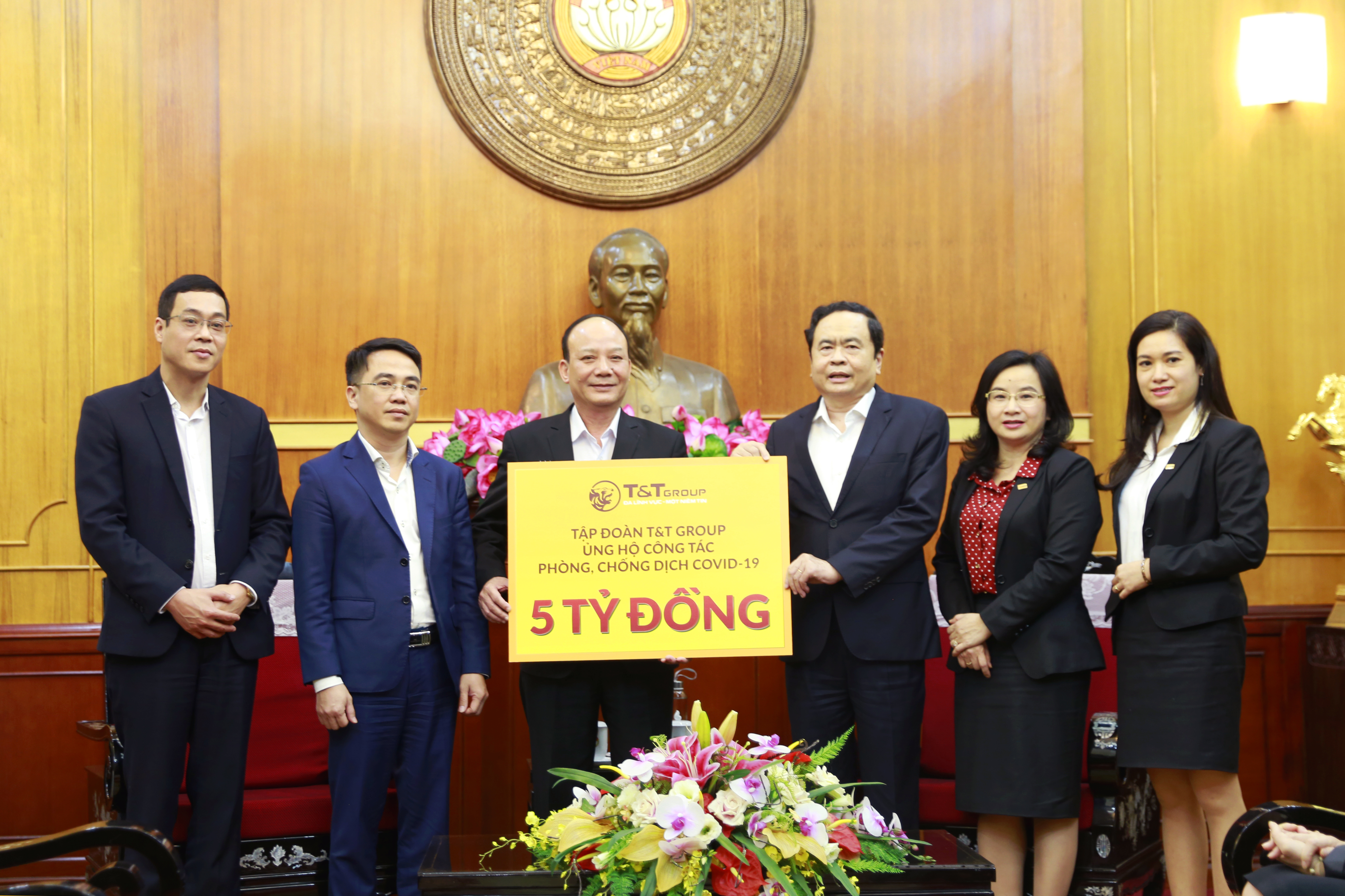 Hưởng ứng lời kêu gọi của Thủ tướng Chính phủ và Đoàn Chủ tịch Ủy ban Trung ương MTTQ Việt Nam, ngày 19/3, tại Hà Nội, Tập đoàn T&T Group và Ngân hàng SHB, mỗi bên đã trao ủng hộ 5 tỷ đồng cho công tác phòng chống dịch COVID-19. Tiếp nhận khoản hỗ trợ, ông Trần Thanh Mẫn, Bí thư Trung ương Đảng, Chủ tịch Ủy ban Trung ương MTTQ Việt Nam cảm ơn Tập đoàn T&T Group, Ngân hàng SHB và các doanh nghiệp đã quan tâm, hưởng ứng lời kêu gọi toàn dân tích cực ủng hộ phòng chống dịch. Các nguồn lực ủng hộ từ người dân và doanh nghiệp sẽ được Ủy ban Trung ương MTTQ Việt Nam điều chuyển cho ngành y tế, lực lượng vũ trang để mua sắm trang thiết bị, chi phí cho công tác phòng chống dịch. “Giữa lúc đất nước đang khó khăn, sự chung tay của các doanh nghiệp, của các tập đoàn lớn là hết sức quan trọng và ý nghĩa”, ông Trần Thanh Mẫn nhấn mạnh.